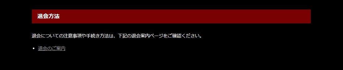 入会案内のページを下に移動すると退会方法の項目があります。